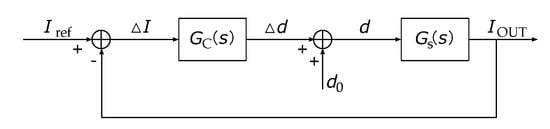 For higher control accuracy, a PI controller can be implemented in the closed-loop control to compansate the estimation error and the component parameter deviation. The control loop is shown in Figure 7, where and denote the transfer function of the controller and the converter, respectively. The bias is the estimated duty ratio derived from Figure 5. Based on the analysis in Section 2, the open loop voltage gain K under resistive load changes with the operating point as shown in Equation (34), and the main time constant is dependent on the output capacitance, as illustrated in Equation (35). The switching periods under both FFM and VFM are much shorter than the main time constant, therefore, the overall time constant approximates the main time constant.