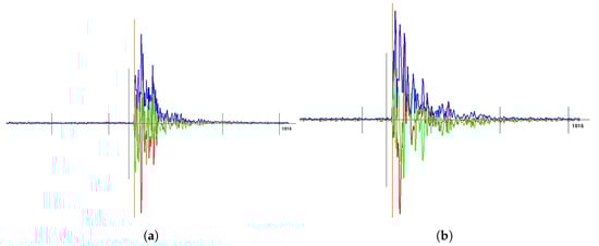 where is the attenuation of the first component, determines how fast the power delay profile increases to its local maximum, and determines the decay at late times. In the UWB channel model, many environment-dependent constants are involved in the CIR. The number of clusters, cluster arrival rate, and power of the cluster vary depending on the environment. In Equation (5), it can be seen that the environment-dependent constant is involved in a large part of the power delay profile even under the NLOS condition. The impulse response changes more significantly in NLOS than in LOS owing to and by Equation (5). Even in a similar environment, small differences can cause significant differences in the CIR.