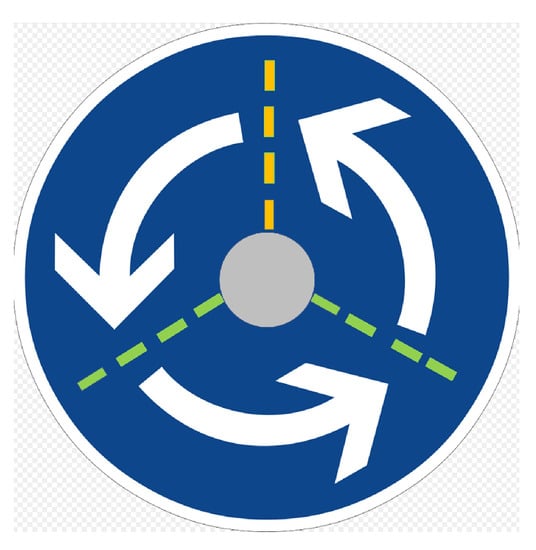 - Magic Roundabout (Swindon). Wikipedia. 2020. Available online: https://en.wikipedia.org/w/index.php?title=Magic_Roundabout_(Swindon)&oldid=954183430 (accessed on 10 May 2020).