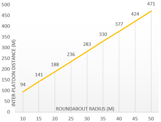 Inter-platoon distances versus roundabout radius.