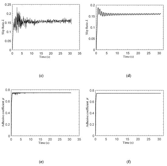 In Equation (20), if the coefficient , is true, this means that the slip ratio control system is asymptotically stable under the action of .