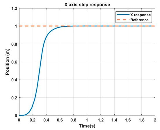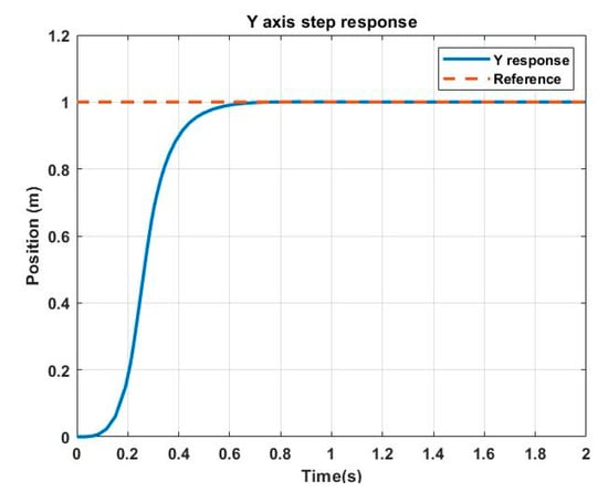 Using these gains, the final step response of the movements in the , and axes was simulated. The responses obtained determine if the tuning fulfills the parameters of the genetic model.