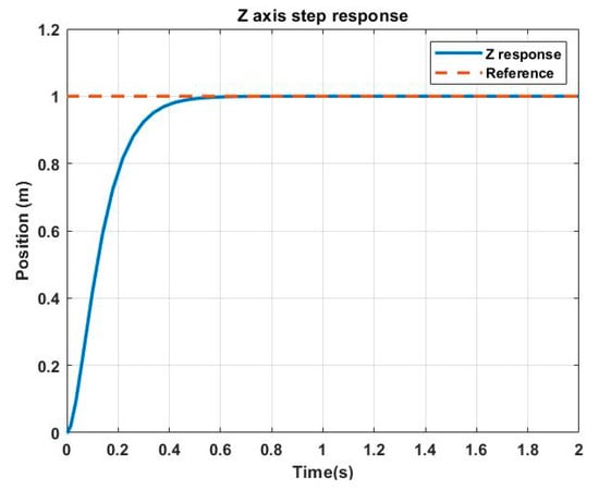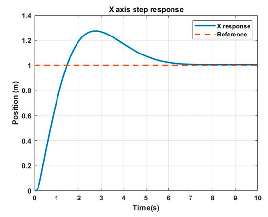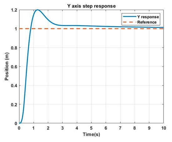 For a validation of the controller performance tuned by the proposed method, the UAV was subjected to a step input on each axis—that is, the system was subjected to the following reference inputs: