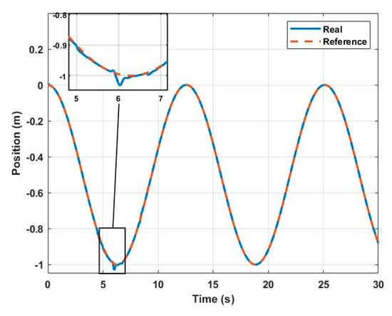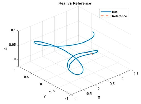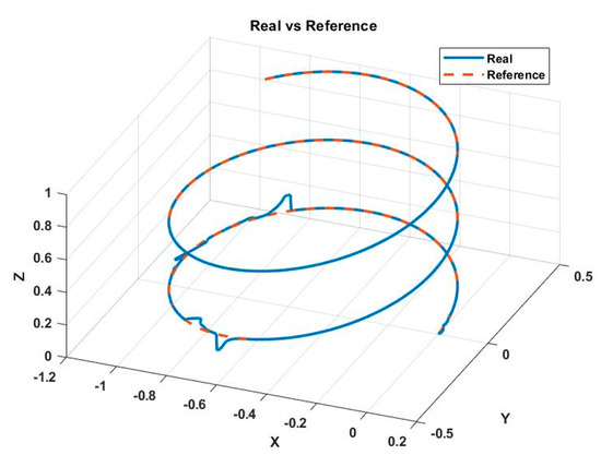 The helical path used can be seen in Figure 14. The performance of the controller in each of the axes of the fixed inertial system is shown in Figure 15, Figure 16 and Figure 17 and the response of the system is compared against the reference path.