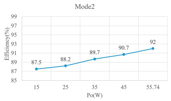 Efficiency curves for the proposed converter in Mode 2 operation.