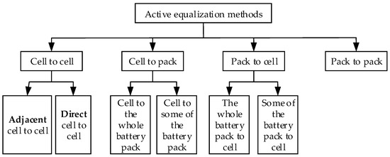 14]. Active equalizing mainly realizes the non-dissipative transfer of energy in the battery group through energy storage components. The main active equalization methods are shown in