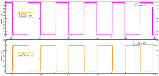 B3 are set to 99% and 30%, respectively. At this time, the gate drive waveforms of the corresponding MOSFET in the balancing circuits of