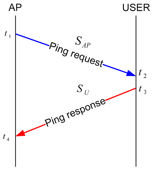 In this section, we will discuss a key generation scheme using wireless channel characteristics. A unique key is generated for each user in our proposed scheme. We generate keys using the RSS value of the channel. To establish a shared key between the AP and a user, we measure the variations of the wireless channel between them over time by sending simple ping messages to each other and measuring the RSS values of the received messages [14,15,38]. In an ideal case, the AP and a user must measure the same RSS value. In a practical case, the RSS values might be close to each other if the time between two-directional channel measurements is sufficiently small considering the rate of change of the channel. Figure 3 shows a packet exchange between a user and an AP. Let us assume that the AP and a user node exchange two frames, one in each direction, and measure the signal strength during [t1–t4], whose duration is smaller than coherence time Tc (i.e., t1–t4 < Tc). Coherence time is the time duration over which the channel impulse response is considered to be not varying. Let S1 and S2 denote the signal strength (in dBm) measured by the user and the AP, respectively. The AP sends a ping request message at time t1, and the user gets the message at time t2. From the received message, the user obtains the RSS value S1. An immediate response message is sent to the AP at time t3, and the AP measures the signal strength S2 of the response message from each user. Each packet is sent at an interval of 1 s. In order to generate a 128-bit key, the AP and the user node should exchange at least 128 packages for each direction. After exchanging n messages, we have a set of from the AP and .