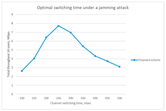 Optimal channel switching time for the proposed scheme under jamming attack.