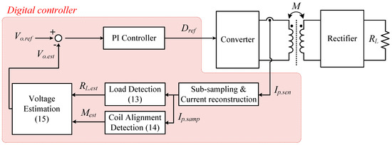 Figure 6 shows the block diagram of the proposed control method. The proposed control method operates in the following manner. First, the primary side current is reconstructed with one of the digital sampling methods presented in Section 2. Next, the magnitude and phase of Zi are calculated based on the obtained information. They are used for identifying RL and M by Equations (13) and (14), which leads to the output voltage estimation by Equation (15). In order to make the output voltage converge to the desired value, a PI controller is used. The output of the controller is Dref limited to 0 to 1.