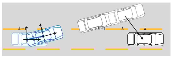 Automotive radar and LiDAR offer the relative range and angle of the detected object based on the host vehicle’s position and heading by interpreting signals that are reflected on the surface of the objects. Therefore, the measurements can be expressed on the host vehicle’s body-fixed coordinate by simply changing the polar coordinate into a Euclidian coordinate. The possible area defined to isolate fault in this paper is an area where radar and LiDAR measurements should exist. For example, if the target vehicle is in the front of ego vehicle, the rear edge of the target vehicle would be detected and the rear side of the target vehicle would become a possible area. Possible area can be calculated by predicting future behavior of the estimated surrounding targets at the previous. For example, the position of target vehicle at kth step can be predicted by the estimation results at k-1th, k-2nd, k-3rd, etc. However, since the host vehicle’s body-fixed coordinate changes every iteration as the host vehicle moves, the position of the predicted target vehicle should be rotated and transferred to be displayed on a new host vehicle’s body-fixed coordinate as illustrated in Figure 5.