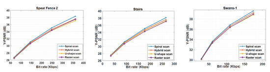 Rate distortion (RD) performance for different scanning methods.
