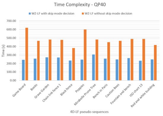 Time complexity of the codec with and without skip mode at Quantization parameter (QP) 40.