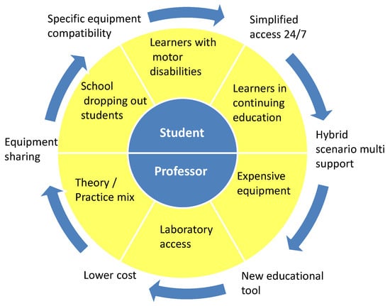 - Gomes, L.; Bogosyan, S. Current Trends in Remote Laboratories. IEEE Trans. Ind. Electron. 2009, 56, 4744–4756. [Google Scholar] [CrossRef]