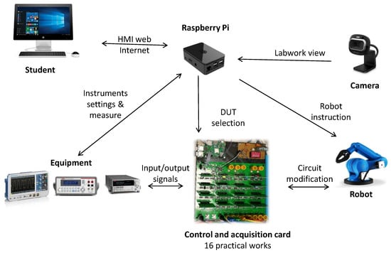 - Lavayssière, C.; Letowski, B.; Larroque, B.; Luthon, F. Easy Applied Sciences Learning through Open Source Remote Laboratory. In Proceedings of the 11th Int. Conf. Education, Research and Innovation (ICERI2018), Seville, Spain, 12–14 November 2018; pp. 2576–2583. [Google Scholar]
