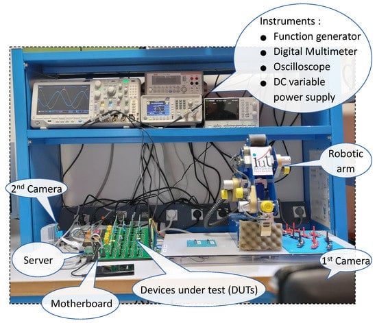 Power consumption measurement has been performed to evaluate consumption, for the adequate design of our power supply board, and to know the consumption of each device. Power consumption values of all equipment in our remote laboratory are shown in Table 2. These measurements were performed while the system was running. The overall consumption of the core system is less than 10 W. Then, equipment shall be added; however, it depends on the test bench and the laboratory type. Our test bench is composed of a DC source (ISO-Tech, IPS4303S), a waveform generator (Tektronix, AFG1022), a Digital Multimeter (Keithley, DMM 2110), and an oscilloscope (Tektronix, MDO3014).
