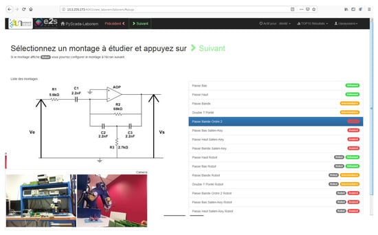 Laborem has been dedicated to electronic filtering courses, and the first practical work available is therefore about this subject. The Laborem client’s side view is illustrated in Figure 9 where students can select which circuit they are going to experiment.