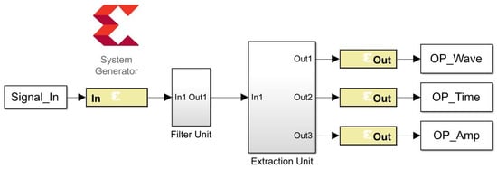For this research, we have incorporated all three subunits to facilitate our desired specifications. Xilinx System Generator—a MathWorks Simulink toolbox—was used for FPGA programming. The system architecture is described in the following three subsections. It should be noted that this is a reconfigurable hardware model. Therefore, anyone can modify this FPGA design according to their needs before the final ASIC implementation.