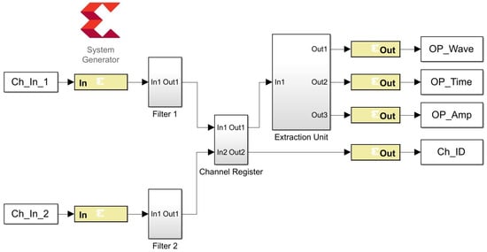 We can reconfigure the FPGA to choose from any of these configurations and test the efficacy of the system before the final ASIC implementation. If the system has one channel with a filtered input, only the signal extractor unit will be adequate as the complete model. Figure 5 illustrates this design setup.