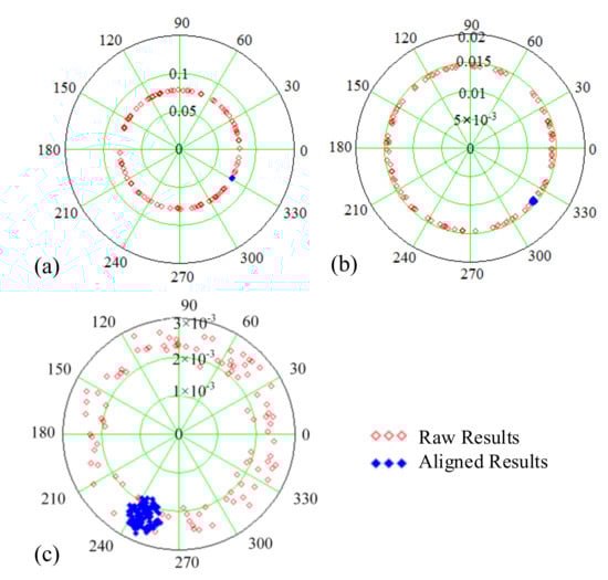 The complex waveform results for the raw and aligned waveforms are shown in Figure 7 at fundamental, fifth, and eleventh harmonics. After alignment, the results still show scatter with a circular distribution, consistent with noise. Phase-noise would distribute the residual signals in an arc.