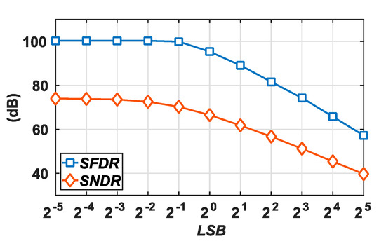 - Kapusta, R.; Shen, J.; Decker, S.; Li, H.; Ibaragi, E.; Zhu, H. A 14b 80 ms/s sar adc with 73.6 db sndr in 65 nm cmos. IEEE J. Solid State Circuits 2013, 48, 3059–3066. [Google Scholar] [CrossRef]