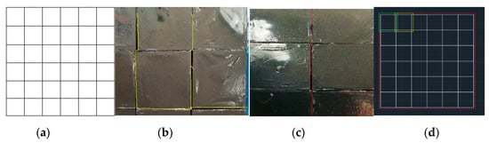 (a) The segmentation model in an ideal state, and the terrain is evenly divided into 36 blocks. (b,c) The actual probe arrangement in a non-uniform way. Given the actual installation and arrangement of the probe, the ideal uniform cutting method still cannot be selected. The edge of the block needs to be blurred to be expanded on the basis of uniform cutting, as shown in (d).