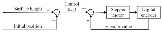 The surface contamination detector moves under the control of high-precision stepping motor and screw drive. The communication works on the RS485 bus that a full-duplex communication, configured with a number of detector channels. To ensure communication efficiency and response speed, two groups of 485 buses were combined to communicate with 18 channel motors. In addition, a code disk was added to the stepper motor to achieve closed-loop control, and a brake device was engaged on the shaft to complete the motor self-locking function. The terrain information of each measurement was transmitted to the main control system, which distributed the supply of the stepper motor mapped to the terrain with the counter on the motor code wheel as control feedback. The block diagram of the motor control system is shown in Figure 9.