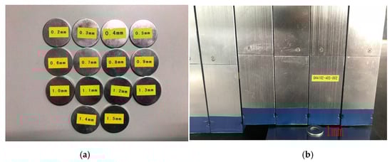 Figure 18a is a standard thickness circular gasket verified by a vernier caliper, ranging from 0.2 mm to 1.5 mm. After the end of detector descending, the standard tool above was used to measure the detector motion control error. The error test of motion control was carried out on 36 channels, each for 50 times. The test statistical results are shown in Figure 19.