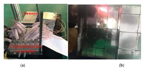 Physical diagram of probe surface and digital communication controller. (a) The detector and communication controller. (b) The schematic diagram of the detector surface.