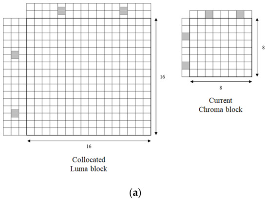- Zhang, X.; Au, O.C.; Dai, J.; Pang, C.; Zou, F. New chroma intra prediction modes based on linear model for HEVC. In Proceedings of the 19th IEEE International Conference on Image Processing, Orlando, FL, USA, 30 September–3 October 2012; pp. 197–200. [Google Scholar]