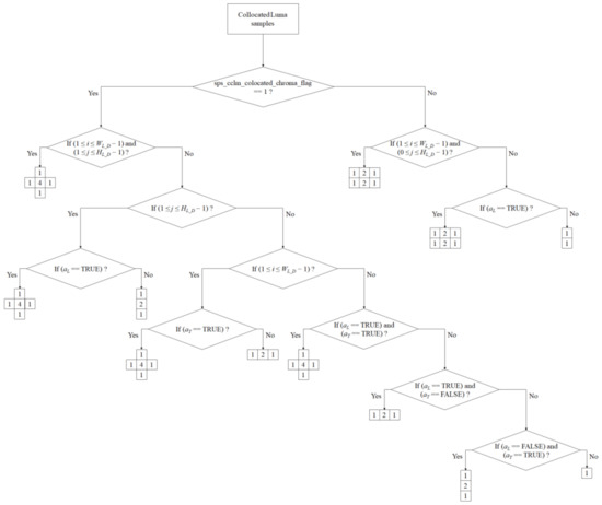 Flow chart of downsampling filter shape selection for collocated luma samples in VTM-6.0.