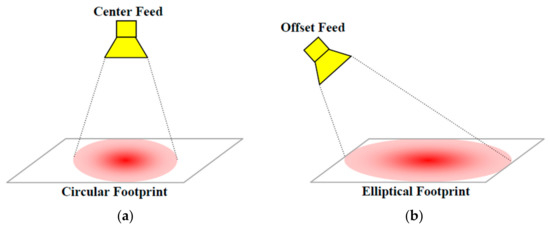Variation in the feed footprint with respect to its position: (a) center feed; (b) offset feed.
