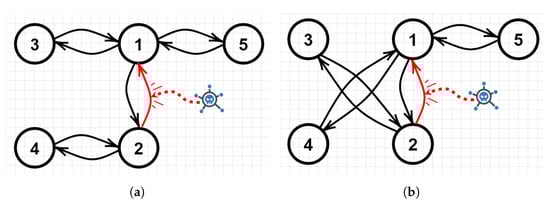 The corresponding graph topology models, where: (a) corresponds to and (b) to .