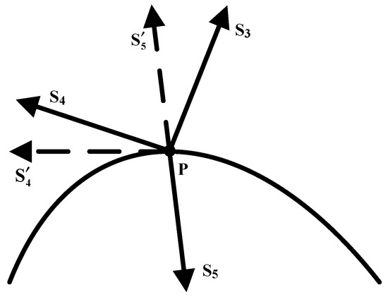 According to Equation (18), the vector S2(X2, Y2, Z2) of the main-tangent plane at the interpolation point is expressed as: