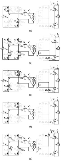 - Lin, B.R. Series resonant converter with auxiliary winding turns: Analysis, design and implementation. Int. J. Electron. 2018, 105, 836–847. [Google Scholar] [CrossRef]