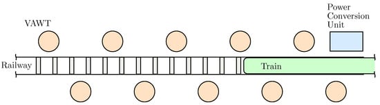 In these scenarios VAWTs give advantages over HAWTs mainly in two aspects [,]. VAWTs show a lower cut-in wind speed compared to HAWTs, and considering an average wind speed of 5 m/s and peak values over 7 m/s, VAWTs are more suitable in this context. On the other hand there is no need for wind direction control in VAWTs, so no matter the direction the train is moving, in contrast to the HAWTs.