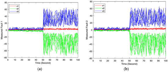 Hence, a total of 12 patches are generated through Equations (18) and (19) for two fault types: six patches for every fault type. Figure 3 shows the data characteristics of different patches in two phases. The fault one (see Figure 3a) and fault 2 (see Figure 3b) cannot be apparently discriminated. As shown in [49], this two-phase batch process is non-Gaussian and nonlinear.