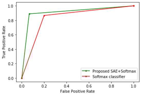 Furthermore, the Softmax classifier is employed for the classification task. The learned features from the proposed SAE are used to train the classifier. Though, Softmax regression, otherwise called multinomial logistic regression (MLR), is a generalization of logistic regression that can be utilized for multi-class classification [20]. However, in the literature, the Softmax classifier has been applied for several binary classification tasks and has obtained excellent performance [21]. The Softmax function provides a method to interpret the outputs as probabilities and is expressed as: