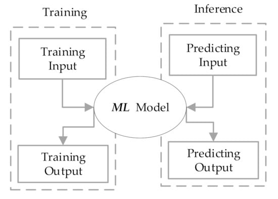 An overview of the proposed framework is shown in Figure 5, where ML is the abbreviation of machine learning. Similar to the traditional machine learning architecture, the framework mainly consisted of two stages: training and inference. The training sample set contained two parts: input and output. Each training input corresponded to a training output. The available machine learning model could be obtained by training; then, the inference process could predict the unknown result.