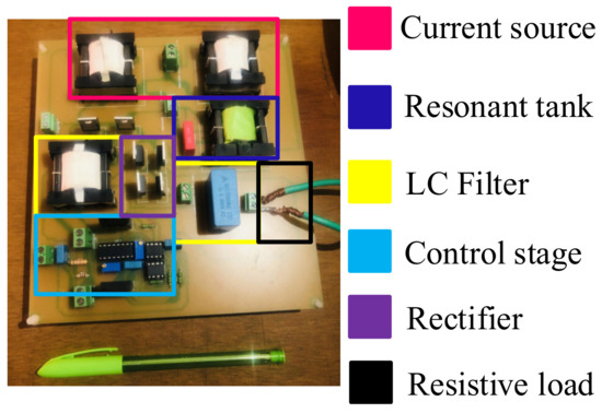 Based on [32], there are different configurations of CFRC. For this work, the studied current inverter is the two current sources resonant inverter. The resonant inductor of the parallel resonant tank is changed by a transformer to obtain galvanic isolation. The sinusoidal signal obtained from the parallel resonant tank is rectified with a full-bridge rectifier and filtered with an LC filter.