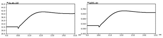 When the wind speed is set to step from 8 to 10 m/s at t = 10 s, the output characteristics of wind farm are shown in Figure 10.