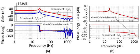 Reference characteristics of the FSM with the magnetic suspension; (a) Bode plot for the θx and θy directions; (b) Bode plot for the Z direction.