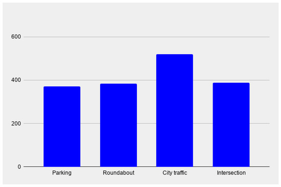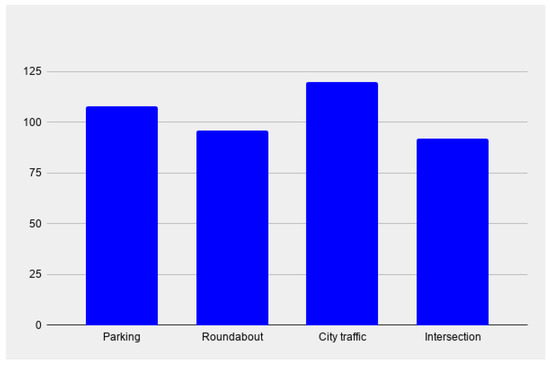 The highest precision was obtained for parking (0.98), the highest recall was obtained for driving through a roundabout and driving through and intersection (0.98 in both cases) and the highest F1-score for driving through a roundabout. The lowest precision was obtained for city traffic, and the lowest recall and F1-score was obtained for parking.