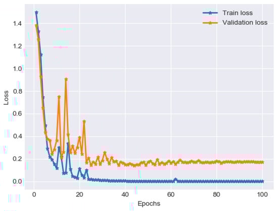 - Dropout layer—the dropout layer was set with the rate of 0.5. This layer turned out to be the key element because it prevents overfitting at the beginning of the training phase [36].