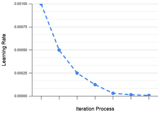 Figure 10 shows how the learning rate was changed among iterations. In this case, the learning rate was halved after five epochs if the validation loss did not decrease.