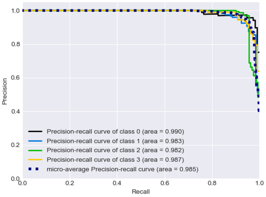 The ROC curve measures the capability of distinguishing given classes by the analyzed model and is presented as true positive rate to false positive rate. With the multi-class problem, we measure this ratio for each single category against all the other categories [37]. The receiver operator characteristic curve shows that the created model was well trained, without overfitting and underfitting. It also shows that there are no unbalanced ratios between true positives and false positives, which again leads to the conclusion that the model was not biased.