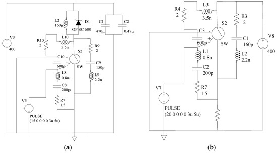 For this research, the proposed behavioural model was demonstrated and validated by redesigning the LT-Spice model provided by the manufacturer. The parameters of the existing model were customised to bring the model into alignment with the extracted measurements. Figure 16a,b is a replication of the simplified zero bias model of Figure 7. The manufacturer and proposed models are both simulated in LT-Spice for comparison, as shown in Figure 16.