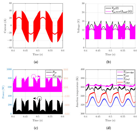 Figure 8b,c. It can be observed that, by adopting the three-level gate signal, the conduction losses profile