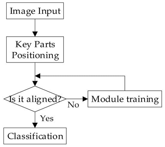 Process of methods based on detection and alignment. First, images are input into convolutional neural networks (CNNs), through which the key points or regions can be extracted and located. Thereafter, the module determines whether the images are aligned with prototypes. If not aligned, the images would be trained again until they are aligned. Finally, the images can be classified accurately.