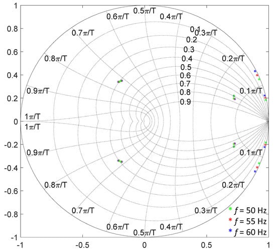 To investigate the system stability further, the eigenvalue plot of the current controller is presented for a different grid frequency in Figure 5. By means of the LQR approach to select the optimal feedback gain set in a systematical way and the frequency adaptability, the closed-loop poles are maintained in the stable region even when the grid frequency varies in a wide range from 50 Hz to 60 Hz.